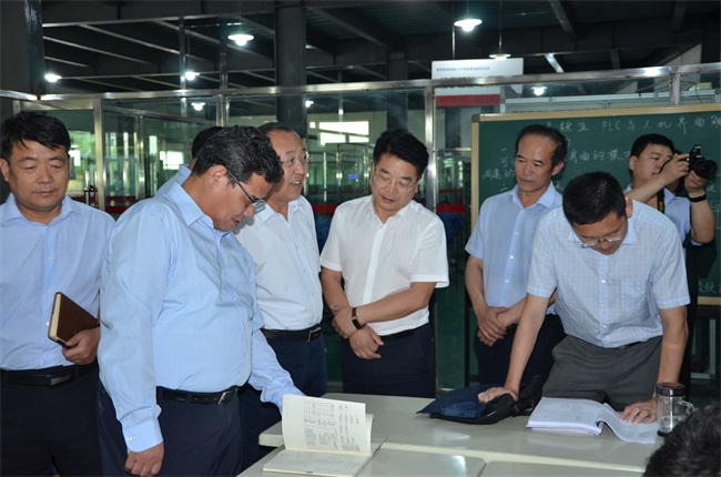 甘肃省人社厅原厅长贾廷权、兰州市人社局副局长臧晓平查看学生实习报告